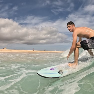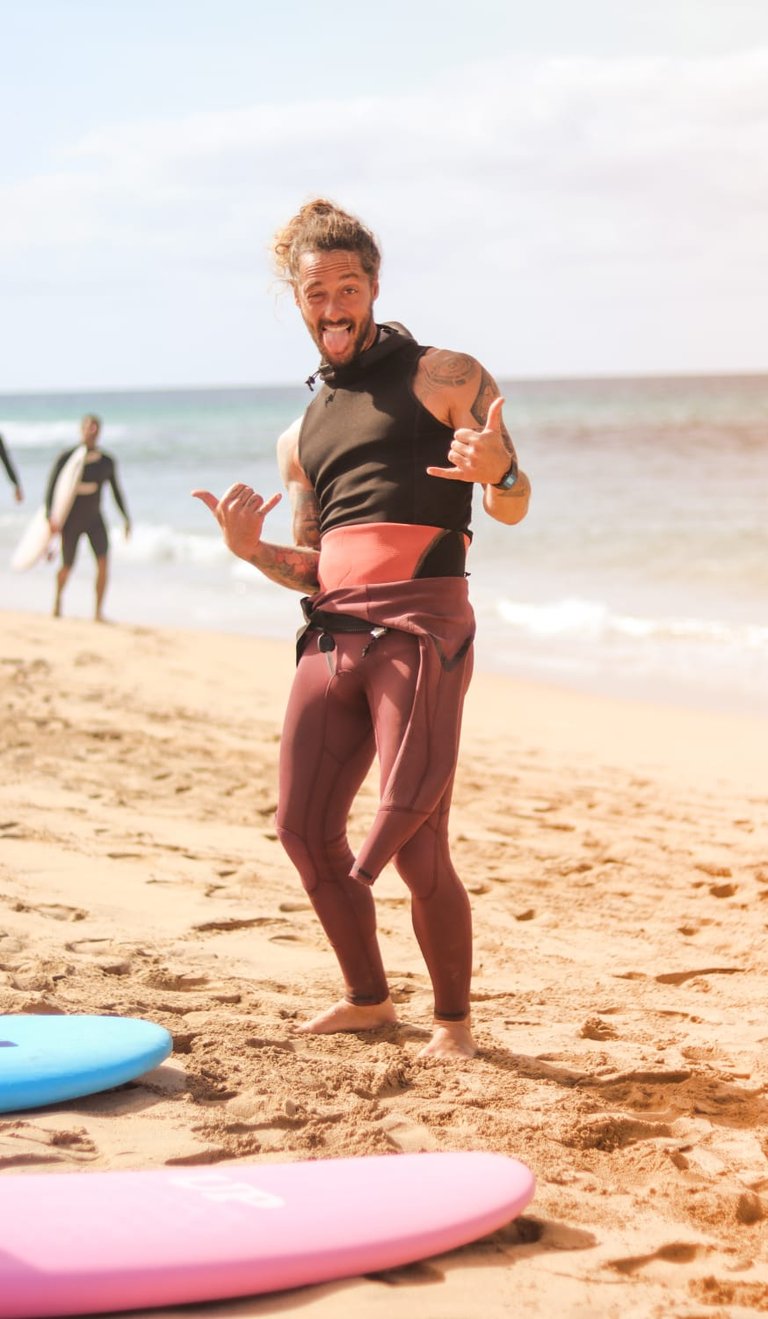 Soy Andrea...instructor y fundador de esta pequeña realidad en Fuerteventura. THE REAL SURF CLUB para mí es más que una escuela de surf! Desde que enseño, lo que más me llena de felicidad es escuchar las personas decir que, gracias a lo que le hes trasmitido, se han vuelto locos por el surf, sueñan con él y que ese día de clases les ha cambiado hasta la manera de enfrentarse a los retos de sus proprias vidas. El SURF es un reto constante consigo mismo, es desafiarse en cada ola, y lo más lindo es que cada una de esas hermosas olas es diferente de la anterior y de la siguiente. Siempre hay que interpretar y modificar nuestras acciones para intentar que cada unas de ellas sea la mejor ola de siempre. Es la parodia de la vida...cada segundo podemos actuar como mejor creemos y cada elección nos trae consecuencias...buenas o malas...así que si elijes mal...WIPEOUT!!! ahahah, pero lo más importante después de una caida es saber cojer nuestra tabla de surf y volver a intentarlo una y otra vez. De eso se trata, la passion y la fuerza nos empujan hacia delante porque es mejor fallar que arrepentirse de no haber intentado!!! VAMOOOOOOOOSSSSSSSS!!